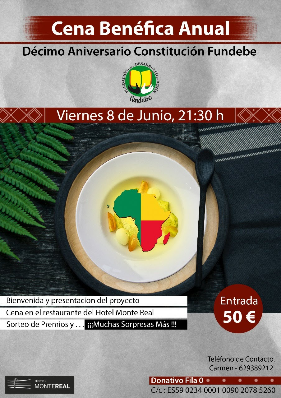 El próximo viernes, 8 de junio se celebrará la cena benéfica anual de FUNDEBE. Tendrá lugar en el Hotel Monte Real a partir de las 21:30. El precio de la cena es de 50 euros. Todo lo recaudado irá destinado a FUNDEBE.