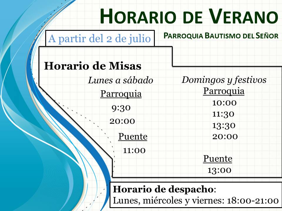 desde hoy mismo comienza el horario de verano en la parroquia.