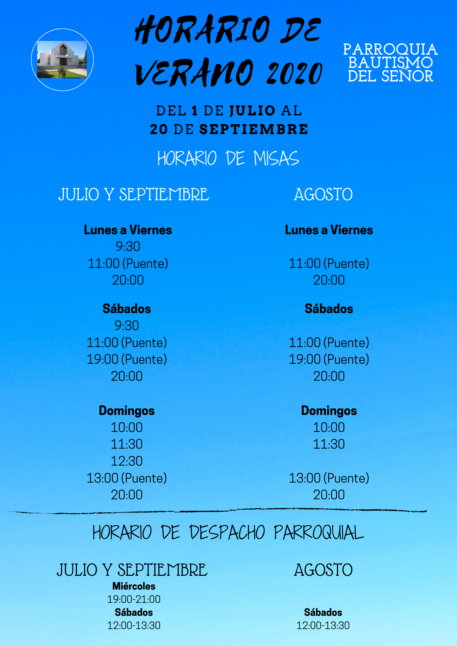 Comenzamos hoy, miércoles 1 de julio, el horario de verano. Permanecerá hasta el 20 de septiembre, incluido.