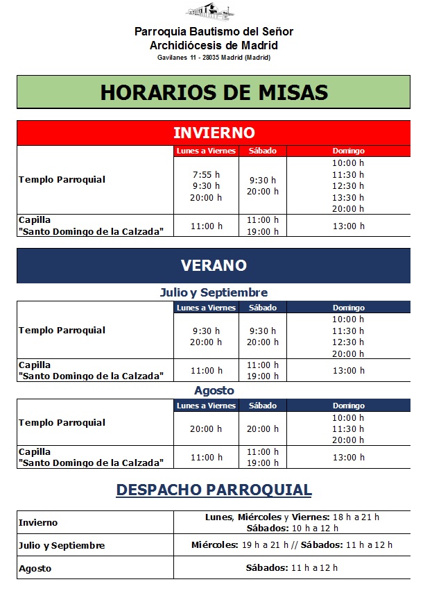 A partir del 1 de julio se realizará el cambio de los horarios de la parroquia en cuanto a las celebraciones y el despacho.